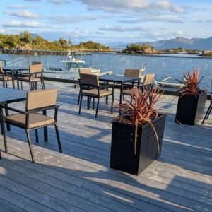 With fresh sea air, carefully considered surroundings, and furniture designed for both comfort and aesthetics, our outdoor terrace is as much a destination as the restaurant itself — effortless, welcoming, and deeply connected to its coastal setting.